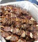 Seasoned and marinated beef tenderloin cubes with onions, prepared over burning coals